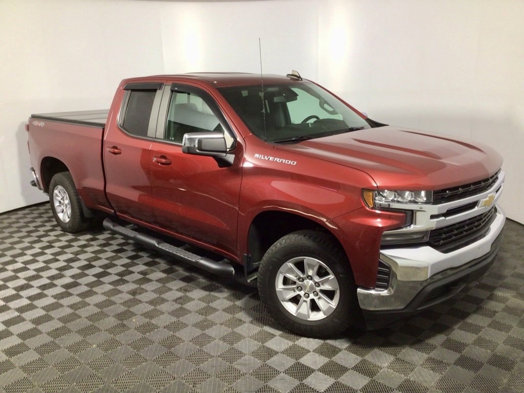 Clean CARFAX!! The 2019 Chevrolet Silverado LT 4WD Double Cab blends rugged capability with refined comfort in a bold, versatile package. Dressed in eye-catching Cajun Red Tintcoat and accented with chrome bumpers and mirror caps, this Silverado makes a strong visual statement. Powered by a 2.7L Turbo engine paired with an 8-speed automatic transmission, it delivers an impressive balance of strength and efficiency ideal for both daily driving and demanding jobs. The 4x4 drivetrain, trailering package, integrated trailer brake controller, and 3.42 rear axle ratio make it ready for towing and off-road confidence.