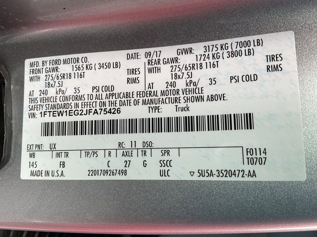4WD, 10-Way Power Driver & Passenger Seats, 2-Bar Style Grille w/2 Minor Bars Painted Dark, 4.2" Productivity Screen in Instrument Cluster, Accent-Color Step Bars, Body-Color Door & Tailgate Handles, Body-Color Front & Rear Bumpers, Box Side Decals, Class IV Trailer Hitch Receiver, Cloth 40/20/40 Front Seat, Delay-off headlights, Equipment Group 302A Luxury, Exterior Parking Camera Rear, Fixed Backlight w/Privacy Glass, Heated Front Seats, Leather-Wrapped Steering Wheel, Power Glass Heated Sideview Mirrors, Power steering, Power windows, Power-Adjustable Pedals, Power-Sliding Rear Window, Radio: Single-CD/SiriusXM w/7 Speakers, Rear Under-Seat Storage, Rear Window Defroster, Remote Start System, Reverse Sensing System, Single-Tip Chrome Exhaust, Steering wheel mounted audio controls, SYNC 3, Wheels: 18" 6-Spoke Machined-Aluminum, XLT Chrome Appearance Package, XLT Sport Appearance Package.