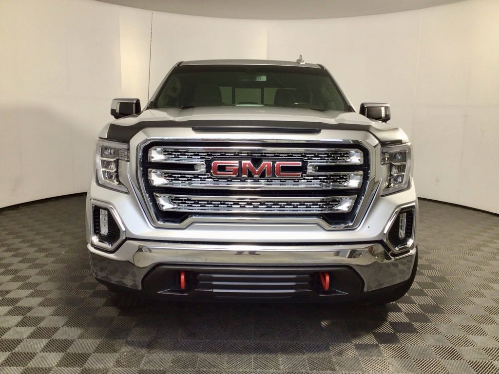 Clean CARFAX!!! 2019 GMC Sierra 1500 SLT 4WD Crew Cab, finished in Quicksilver Metallic with a sophisticated Dark Walnut/Slate leather interior. Built for those who expect more from a truck, the Sierra SLT blends power, technology, and craftsmanship into a versatile, full-size pickup thatâs as confident on the job site as it is on city streets.