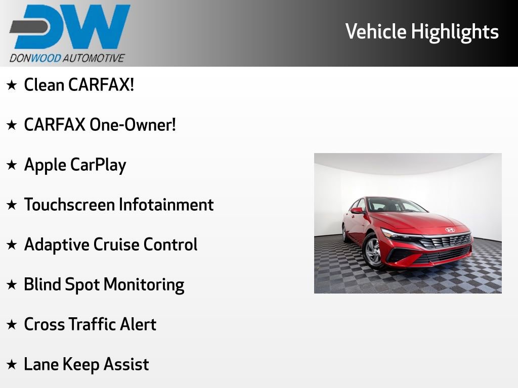 Clean CARFAX!, CARFAX One-Owner!, A complimentary Lifetime Powertrain Limited Warranty is included with this Hyundai Elantra SE!, This Hyundai Elantra SE has many features and is well equipped including, Apple CarPlay, Touchscreen Infotainment, Adaptive Cruise Control, Blind Spot Monitoring, Cross Traffic Alert, Lane Keep Assist, Backup Camera, 15" x 6.0J Alloy Wheels, 6 Speakers, Air Conditioning, Alloy wheels, Apple CarPlay & Android Auto, Auto High-beam Headlights, Brake assist, Electronic Stability Control, Exterior Parking Camera Rear, Fully automatic headlights, Overhead console, Power door mirrors, Radio: AM/FM/HD Display Audio.
