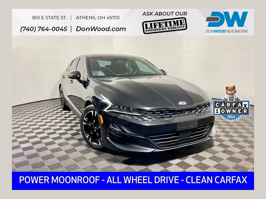 Clean CARFAX!, CARFAX One-Owner!, This Kia K5 GT-Line has many features and is well equipped including, Apple CarPlay, Power Moonroof, Heated Steering Wheel, Heated Seats, Leather Seats, Backup Camera, Adaptive Cruise Control, All-Wheel Drive, Air Conditioning, Apple CarPlay & Android Auto, Auto High-beam Headlights, Dual-Zone Automatic Temperature Control, Forward Collision Avoidance-Assist - Cyclist, Forward Collision Avoidance-Assist - Junction Turn, Four wheel independent suspension, Fully automatic headlights, Gloss Black Pillar & Door Frame Cover, GT-Line AWD Special Edition Package, GT-Line Red Interior Package, Heated door mirrors, Heated Front Bucket Seats, Heated front seats, Heated steering wheel, Highway Driving Assist, Leatherette Seat Trim, LED Interior Lighting, LED Projection Headlights, Navigation-Based Smart Cruise Control - Curve, Panic Alarm, Panoramic Power Moonroof, Panoramic Sunroof, Power door mirrors, Power driver seat, Radio: AM/FM/MP3 Audio System w/Navigation, Remote Keyless Entry, Security System, Smart Cruise Control w/Stop & Go, Sport steering wheel, Steering wheel mounted audio controls, Wireless Charger.