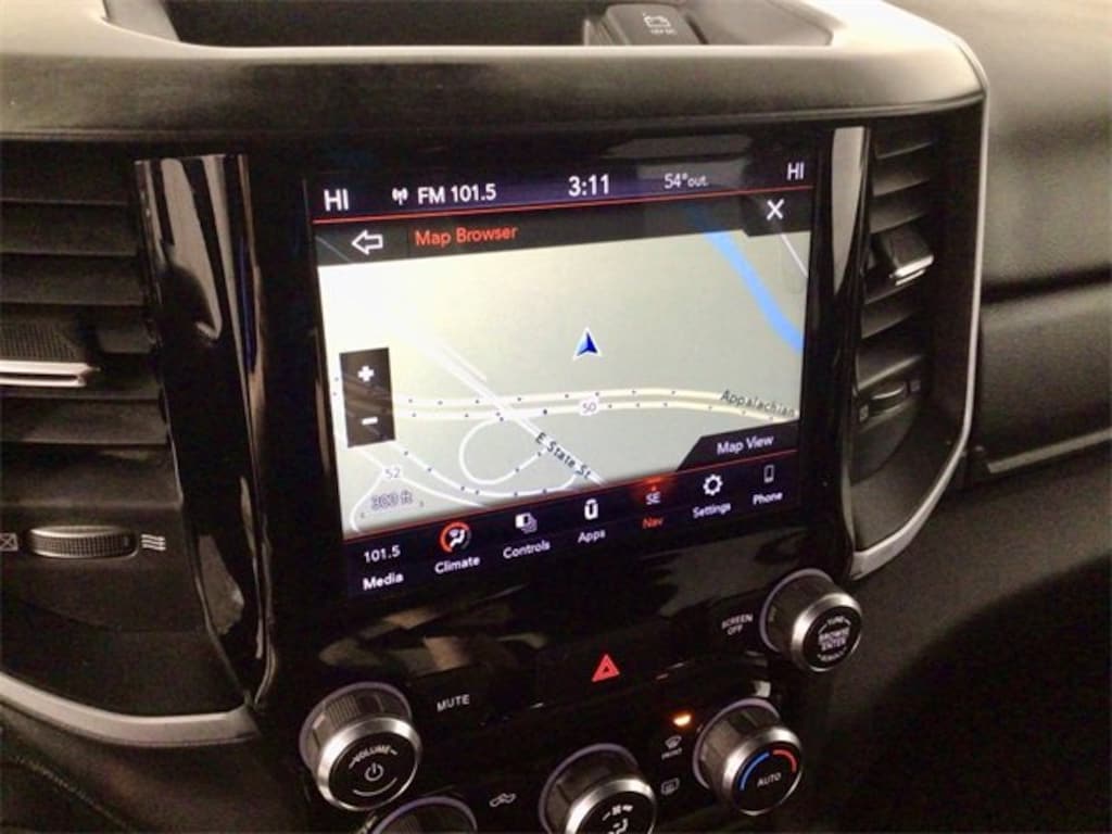 Inside, the spacious Crew Cab offers exceptional comfort with deluxe cloth bucket seats, a power 8-way driver seat with lumbar support, and a leather-wrapped steering wheel. Advanced technology includes the Uconnect 4C Navigation system with an 8.4-inch touchscreen, Apple CarPlay, Android Auto, Bluetooth, HD Radio, and a 4G LTE Wi-Fi hotspot to keep you connected wherever the road takes you.