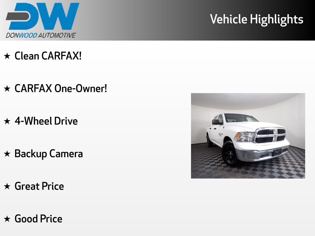 Clean CARFAX!, CARFAX One-Owner!, This Ram 1500 Classic Tradesman has many features and is well equipped including, 4-Wheel Drive, Backup Camera, Great Price, Good Price, Active Grille Shutters, Black Exterior Mirrors, Bright Grille, Electronic Shift, Heated door mirrors, Power door mirrors, Rotary Shifter-Black, Speed control.