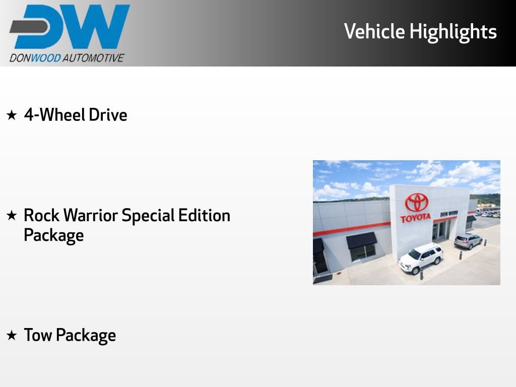 At Don Wood Toyota, we believe in transparent, live market pricing. Our vehicles are priced using real-time data, so you can shop with confidence knowing youâre getting a competitive value. Whether youâre searching for a Great Deal, a Great Price, or a Great Value, Don Wood Toyota has you covered. Plus, enjoy a complimentary CARFAX® report available today. If we donât have exactly what youâre looking for, just let us know weâll find it for you. We also offer nationwide delivery, making it easy to purchase your next vehicle from anywhere. We have access to virtually any make or model and proudly offer Certified Pre-Owned vehicles as well. We can also locate vehicles with nearly any option, including Sunroof, Moonroof, Navigation System, Heated Steering Wheel, HomeLink, LED Headlights, DVD Player, Rear Seat Entertainment, Backup Camera, Brake Assist, Automatic Emergency Braking, Blind Spot Monitoring, Cross Traffic Alert, Rear Cross Traffic Alert, Lane Departure Warning, Night Vision, Head-Up Display, Automatic Parking, Cruise Control, Adaptive Cruise Control, Rain-Sensing Wipers, Remote Engine Start, Memory Seats, Leather Seats, Heated Seats, Cooled Seats, Third-Row Seating, Steering Wheel Controls, Multi-Zone Climate Control, Keyless Entry, Alloy Wheels, Premium Wheels, Apple CarPlay®, Android AutoTM, WiFi Hotspot, Premium Audio Systems, Bluetooth® Audio, Hands-Free Audio, Portable Audio Connection, Satellite Radio, Trailer Tow Package, Tow Hitch, 4WD, AWD, FWD, Disability-Equipped Vehicles, Keyless Start, Security System, Roof Rack, Dual Rear Wheels, Stability Control, and much more!