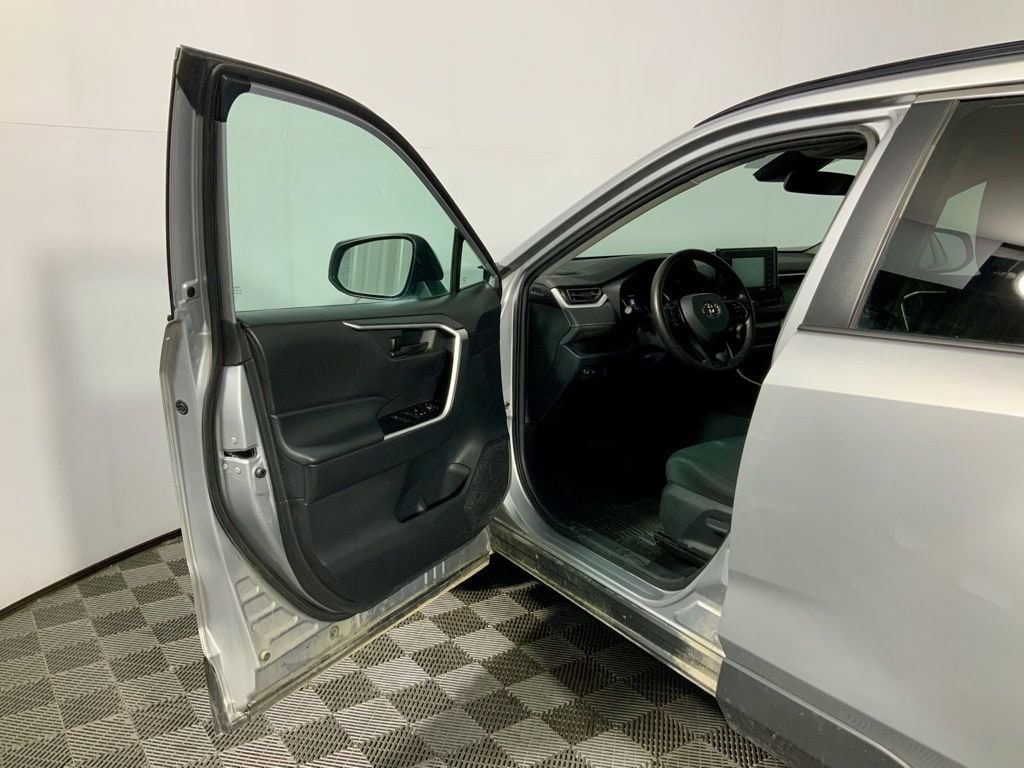 2021 Toyota RAV4 in Silver Sky Metallic with a Black Fabric interior delivers exceptional efficiency, advanced safety technology, and everyday versatility in a smart compact SUV design. Powered by a responsive 2.5L DOHC 4-cylinder engine with Dual VVT-i and paired with a smooth automatic transmission and front-wheel drive, this RAV4 achieves an impressive EPA-estimated 27 MPG city and 35 MPG highway. Built with a 4,610-lb GVWR, trailer sway control, and a finely tuned independent suspension system, it provides a comfortable ride with confident handling for both city commutes and highway travel.